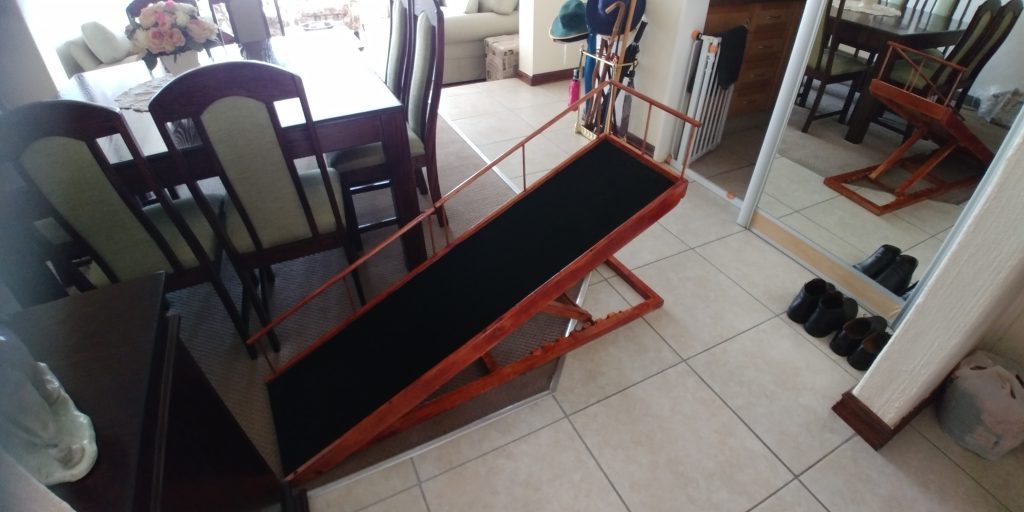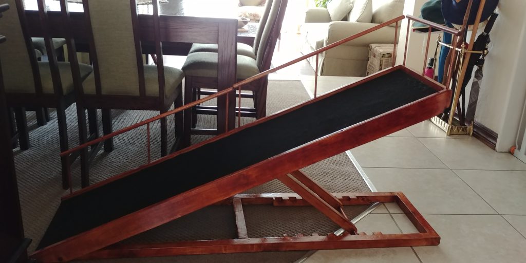 This doggy ramp was built for a cute fur baby who needed some extra help up the stairs. Hand crafted from wood, sourced locally, and finished off as per the request received. A simple solution to a now very happy dog!