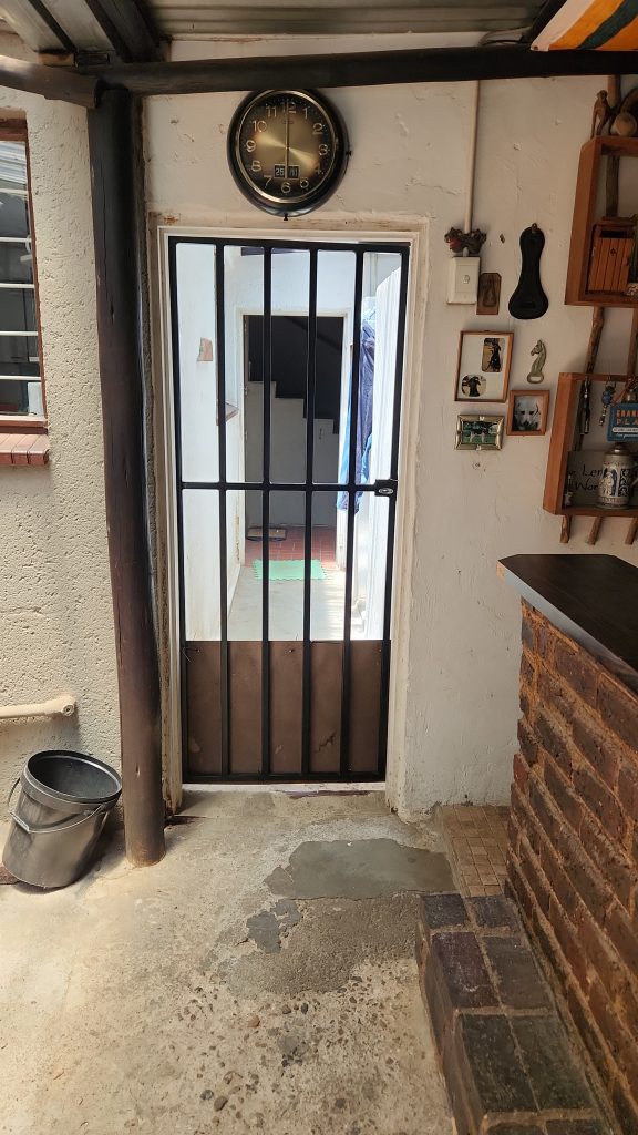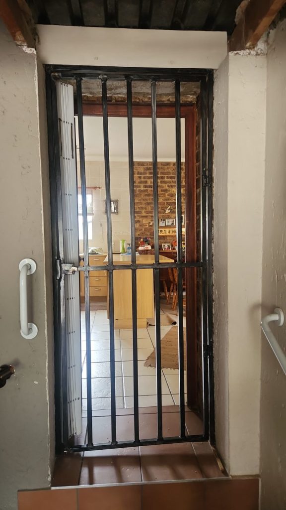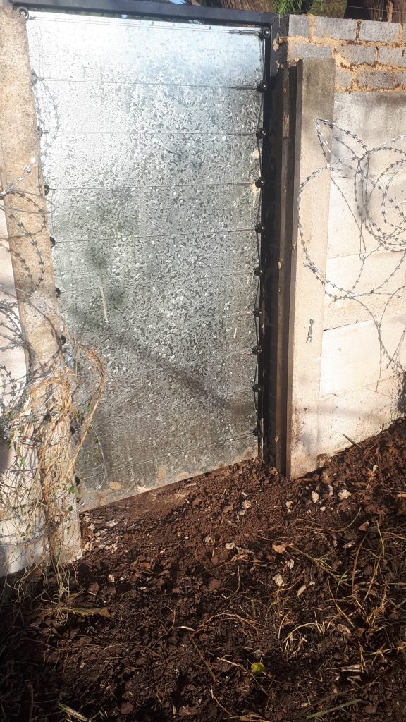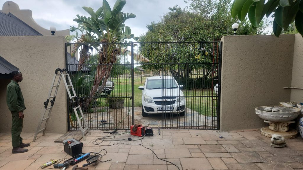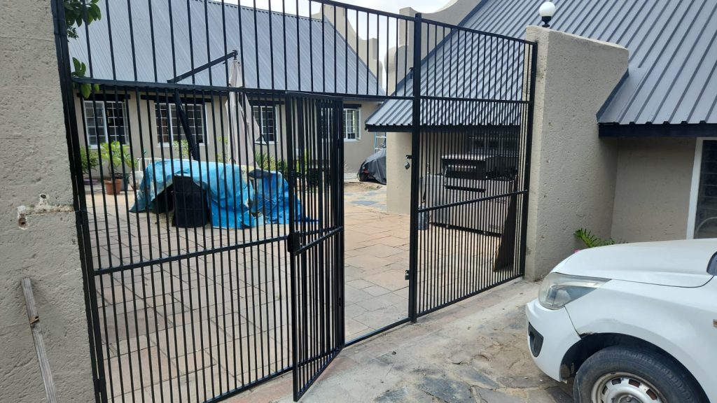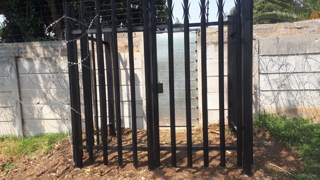 Our client had a very particular need for security. They required a security gate to lead out from a boundary wall into a greenbelt veld on the outside of their property. Some detailed steel work needed to be done for this project with a sleek black finish.