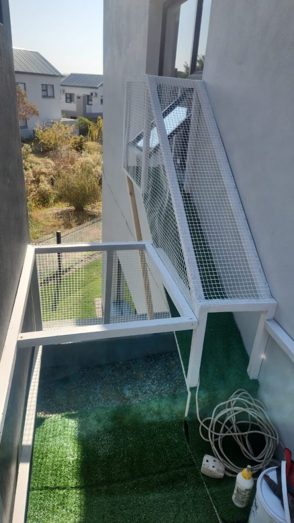 This balcony catio was the perfect solution for our client who wanted their cats to be able to enjoy a “rooftop garden” just for themselves. Easy access from their favourite window and a great view, all in the safety of their own space.