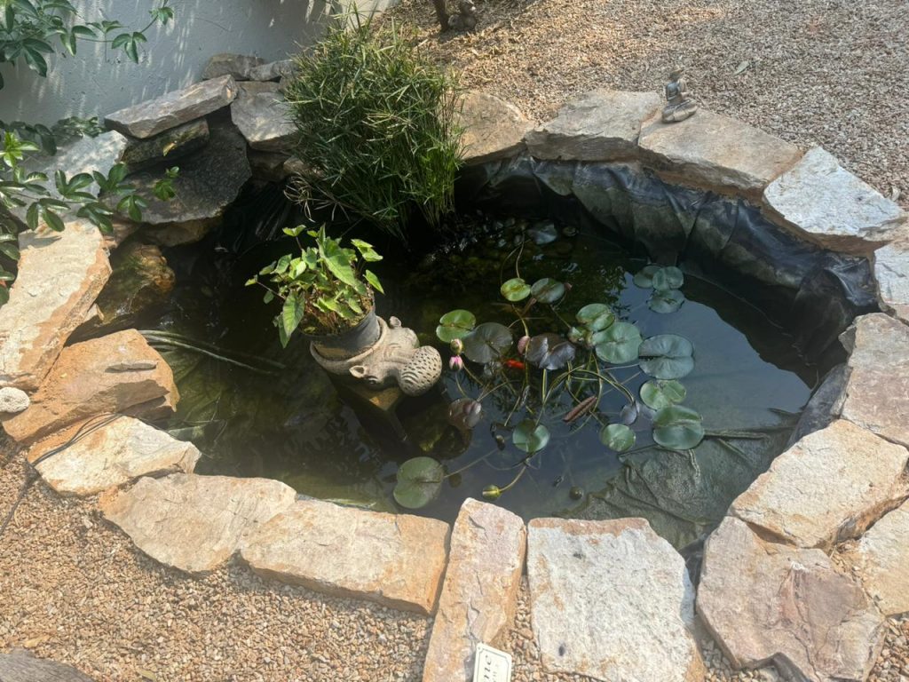 Our client had a unique request with a contained space to work in. We loved being creative with the space, custom built the pond and ensured the correct filtration was added.
